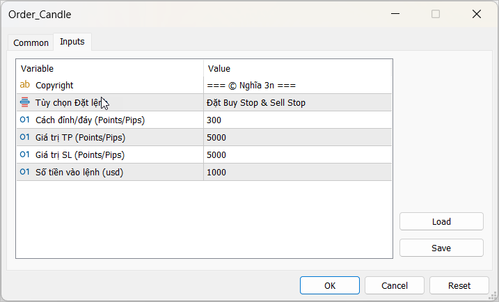 Kịch bản: Sau khi kết thúc một cây nến, bạn nhận thấy đó chính là cây nến tín hiệu. Bạn muốn đặt một lệnh "Buy Stop" tại trên điểm H của cây nến (SL tại dưới L của cây nến); hoặc bạn muốn đặt một lệnh "Sell Stop" tại dưới điểm L của cây nến (SL tại trên H của cây nến). EA này sẽ giúp bạn!